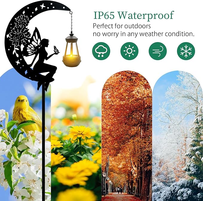 - 【High quality materials and Design】Made of high-quality metal, not easy to fade and corrode, sturdy and durable. The animal shaped design is natural and realistic, and the lantern with solar panels is very suitable for outdoor garden decoration. It will automatically light up after dark.
