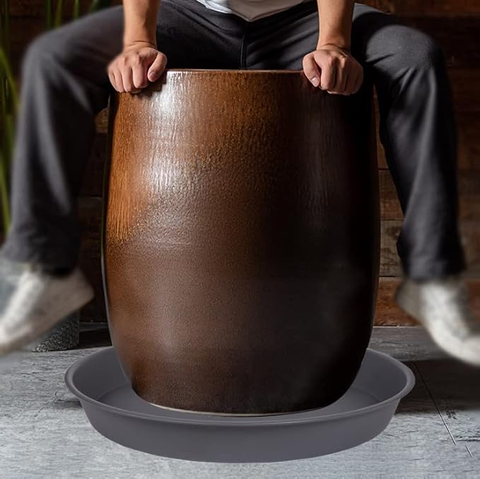 - 【PlANT SAUCER USE】These 25 26 inch plant saucers catches water overflow from flower pots and keeps your furniture and stains free. No fear of leakage from flower pots. Dark brown appearance will not affect any color matching with planters.