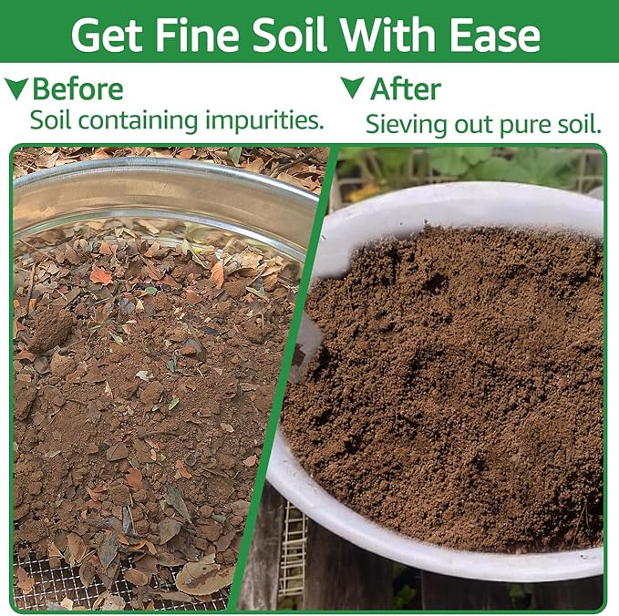 - Versatile tool - This soil sifter serves multiple purposes such as compost sifting, soil sifting, dirt sifting, rock sifting, sand sifting, and more.