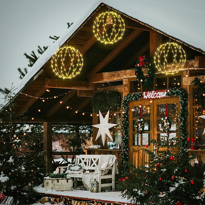 - LED BALL CHRISTMAS LIGHTS: This iron ball light has a novel design, which is composed of foldable metal frame and LED fairy lights wrapped separately on the structure; Light up your house and garden at night, create a strong holiday atmosphere