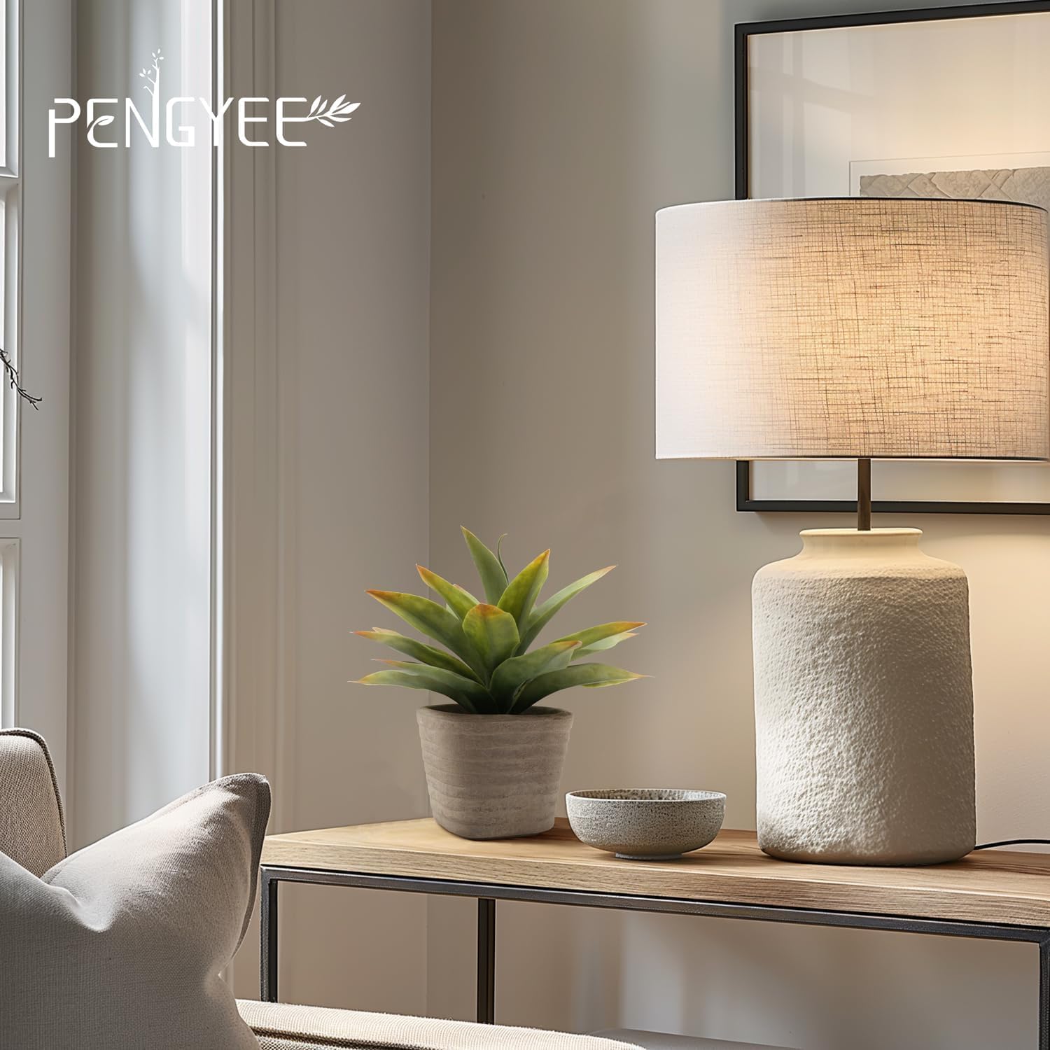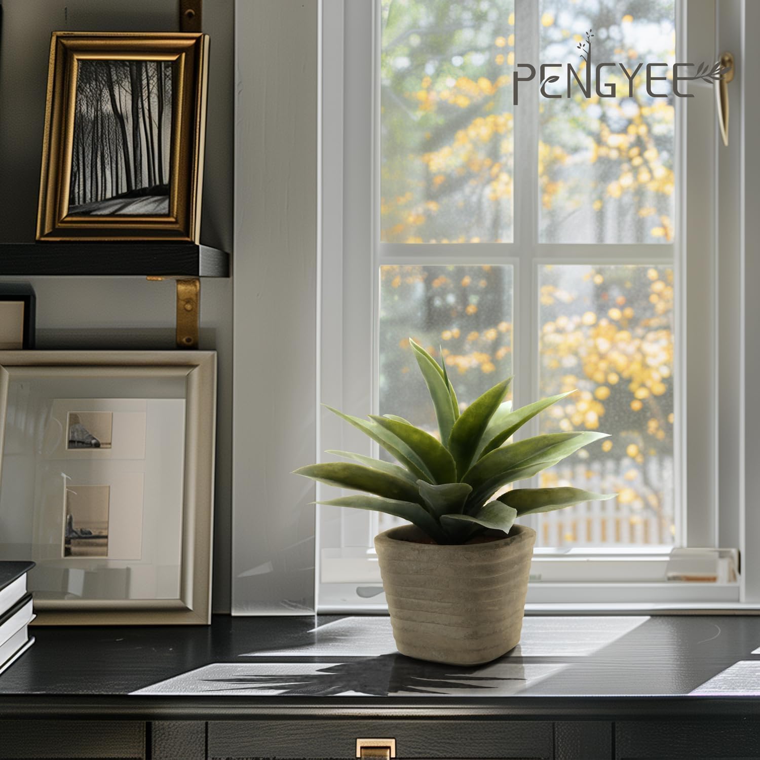 - DURABLE MATERIAL : PENGYEE 2 pack small artificial plants Indoor for room decor are made of premium and eco-friendly plastic that is non-toxic and harmless. To make our artificial agave plant for home decor look more realistic, we adopt a unique design to imitate the frosty gray leaves, which is not dust. Please don't worry about it