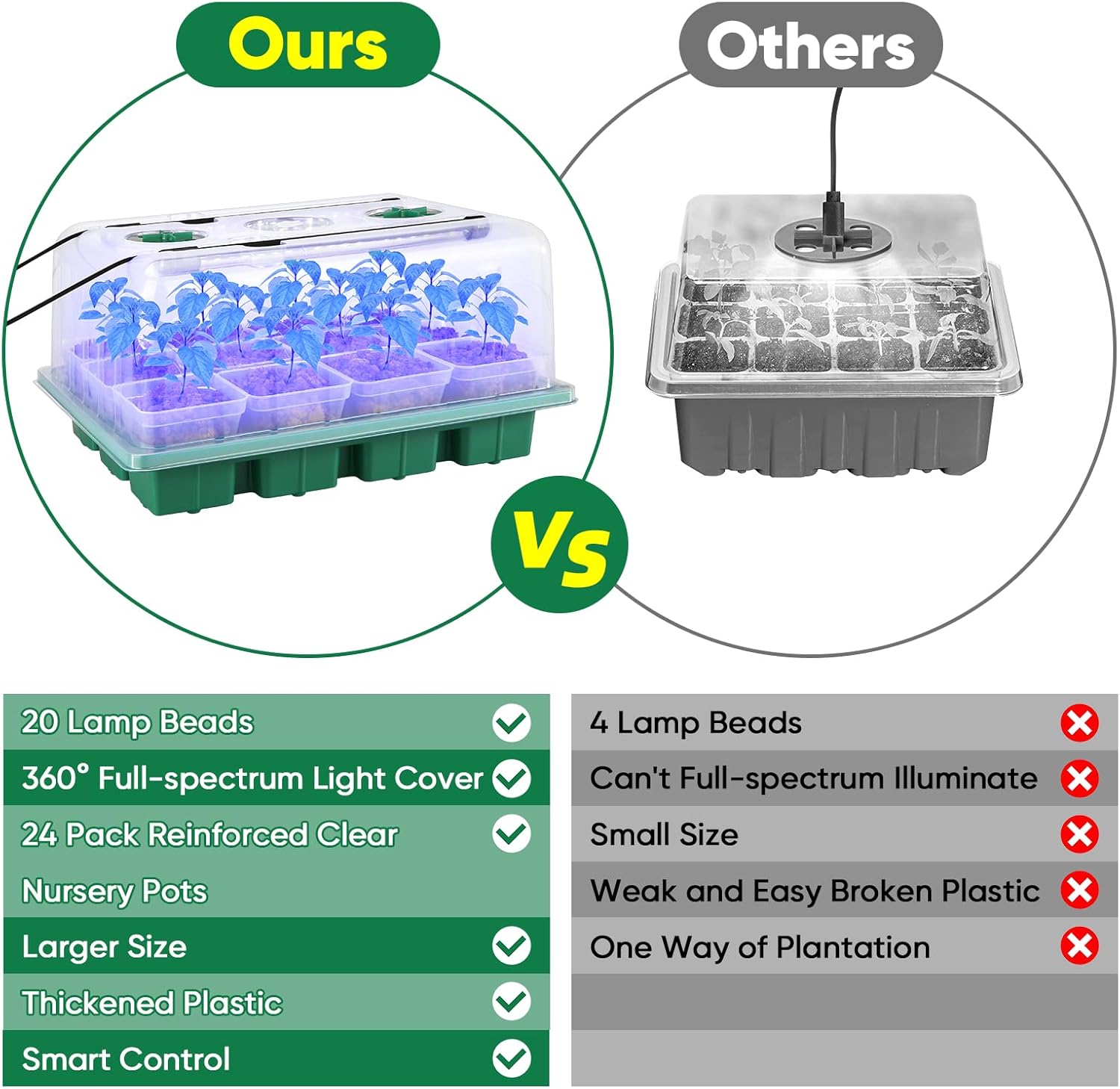 - 【ABS &Clear Material】Our trays is made of high-quality plastic material, durable and clear tray design which is means you can see the soil condition of seed, it is better than invisible old versions. It also is lightweight to carry, and unbreakable. Our product is reusable, you can grow more different seedlings! It is great home use product, anti-ultraviolet, corrosion-resistant, water-saving, and dry-resistant. Observing your plant’s daily growths, choose this modern home garden seed starter strays!