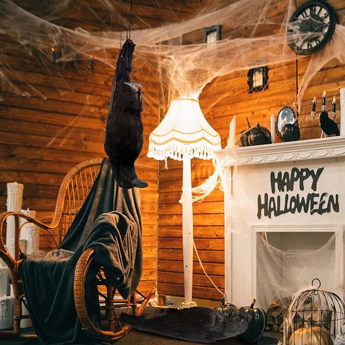 - Package Contents: our fake dead crow set includes 1 piece of fake black crows, which look like the real thing and set off a scary atmosphere; If you are looking for the right Halloween decoration, it will be worth your choice; They help you create a creepy atmosphere for your home this Halloween season