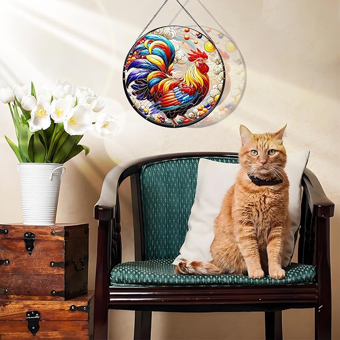 - Effortless Elegance with Easy to Use Design: Our Rooster window sun catcher features a vividly painted cock, exuding vitality and energy. Perfect for those who cherish pastoral and natural themes, this piece brings a sense of tranquility and connection to nature into your home. Simply hang it in your preferred decorative spot to instantly elevate the ambiance. Its straightforward design makes it a breeze to incorporate into your home decor, adding a touch of rustic charm and elegance