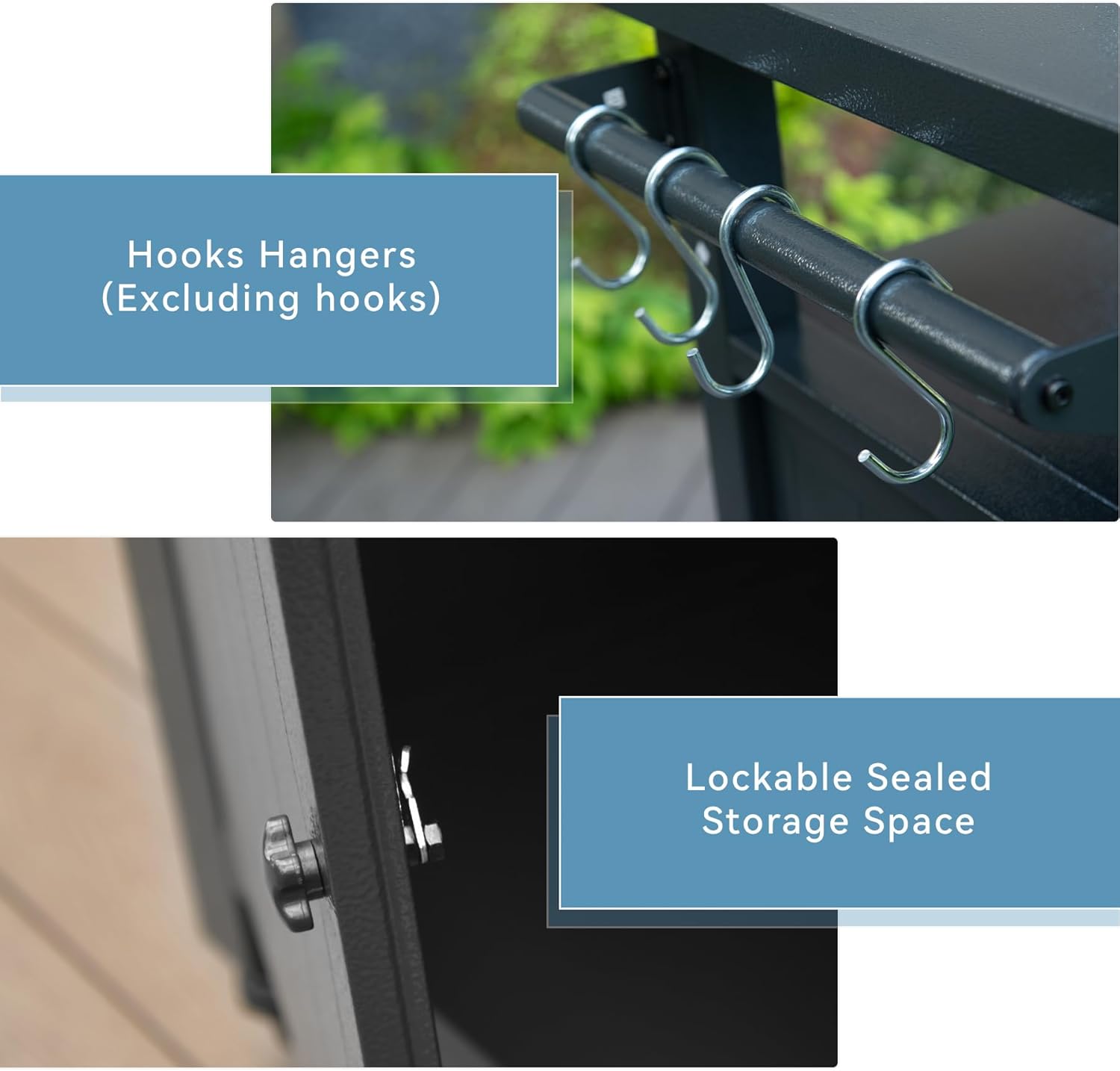 - Versatile design - two sides of grill cart can place paper towel,hook holder, condiments, drinks or barbecue tools, allowing you take them easily during the barbecue. On below of the outdoor grill cart with a cabinet to store your kitchen tools,food,or snacks. Outdoor grill carts with 2 wheels for effortless movement. You can lock the cabinet doors to prevent pests