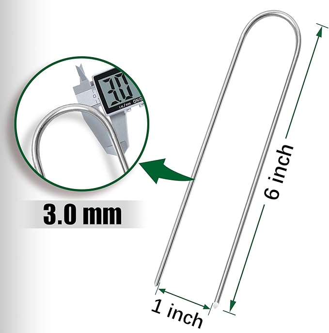 - 【Multi Purpose】The metal landscaping stakes are geat for fixing drip irrigation tubing hose, chicken wire, outdoor decoration, landscape fabric, plant cages, dog fence and so on.