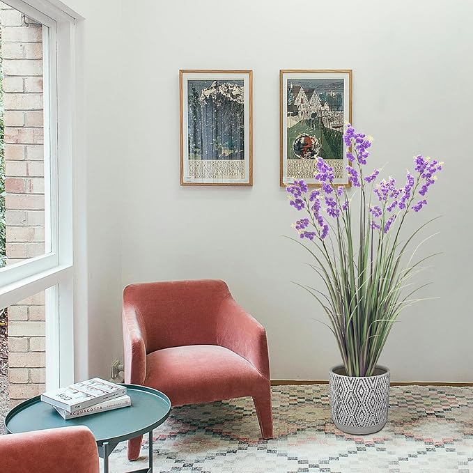 - SIZE:This 47-inch Artificial Tall Grass Plants is composed of five thick tree trunks, each adorned with countless small wind chime flowers, made of silk with bright and natural colors, adding a beautiful and moving touch to your home decor.