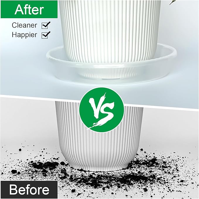 - Clear Water Catch Tray: When you choose RooTrimmer plant pots trays, you will get 5 pack high quality environmental saucers, you can see the water levels and plant health without worrying about over watering or under watering, what's more, you can add colorful pebbles for a decoration
