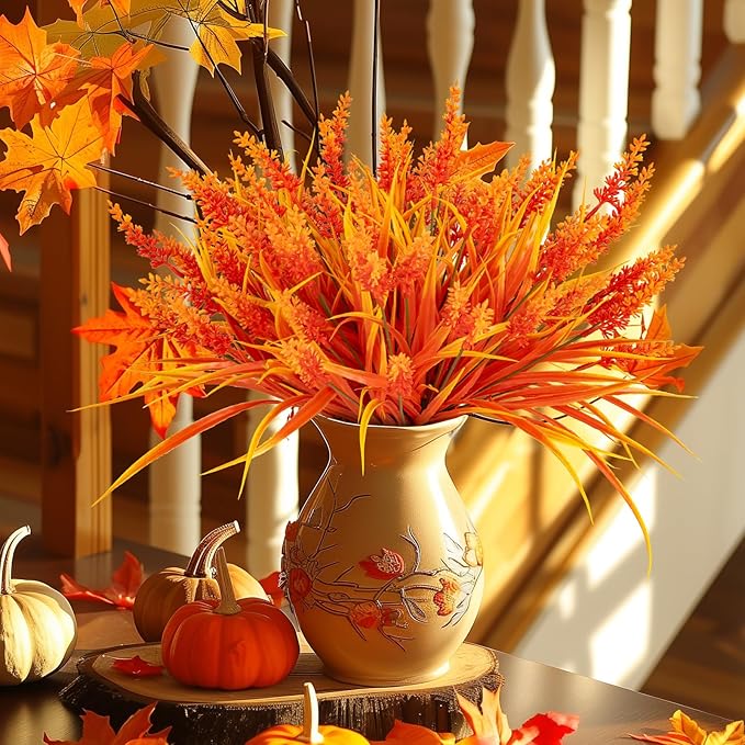- [Natural and Realistic]Artificial Fall flowers and green ferns will brighten your life.This package includes 12 bundles of artificial flower plants,there are seven stems and seven flowers in a bundle.