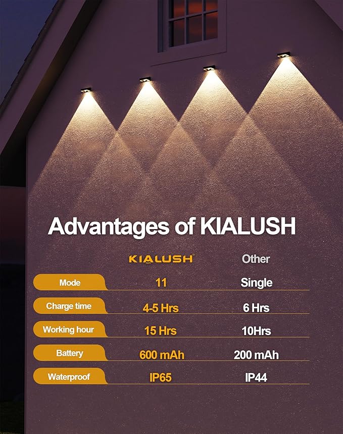 - 【600mAh Battery & Long Working Hours】We equip the outdoor solar wall lights with a built-in 600 mAh battery, which supports each outdoor solar light to stay on for more than 15 hours, meeting the daily use of most families.