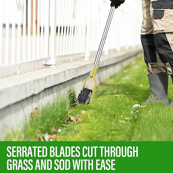 - 【Efficient Trimming】: Our sawtooth wheel of the trimmer edger lawn tool rotates when pushed forward, gathering the grass you need to trim together and cutting it off easily. Combined with the adjustable handle length and wheeled design, this lawn edger tool can not only easily trim the edge of the lawn, but also move easily, making work more efficient