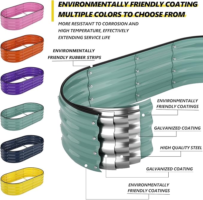 Galvanized Metal Planter Raised Garden Bed Kit for Gardening Outdoor,8x2x1ft Planter Grow Garden Box Raised Flower Bed,Long Vegetable Clearance Herb Raised Garden Beds for Gardening