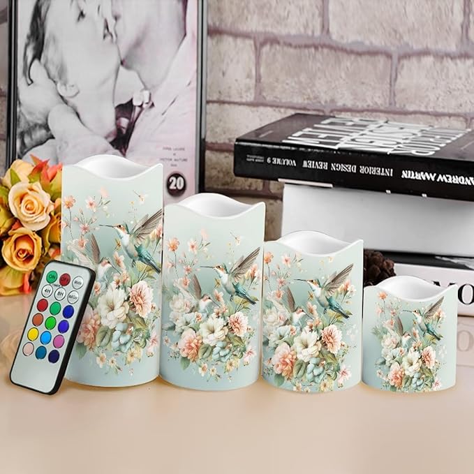 Ystardream Battery Operated LED Candles Set of 4 with Remote Control Timer Dancing Flame Pillar Candles Home Table Coastal Decorations