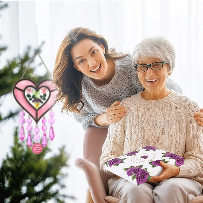 Mom's Birthday Gift Cool Pink Glass Heart Sun Catcher