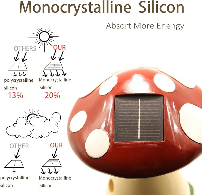 - How to Use: To activate this enchanting solar garden mushroom light, simply flip the convenient switch and position the solar panel towards the sun during the initial setup. Enjoy effortless operation with no further steps needed.