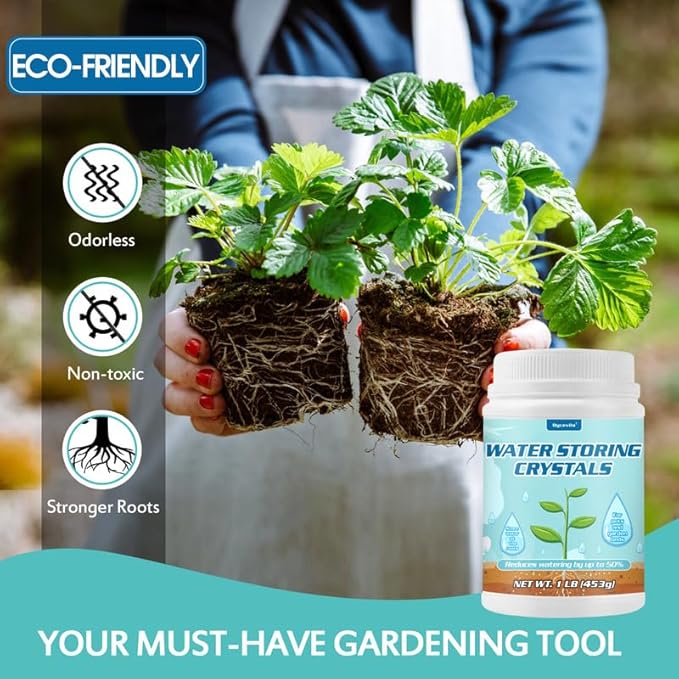 - SAVE TIME - Reduce your plant watering frequency by as much as 50% with these Water Storing Crystals for Plants. They are designed to prevent over-watering by absorbing and storing excess water. This helps to avoid water logging, allowing your plants to thrive.