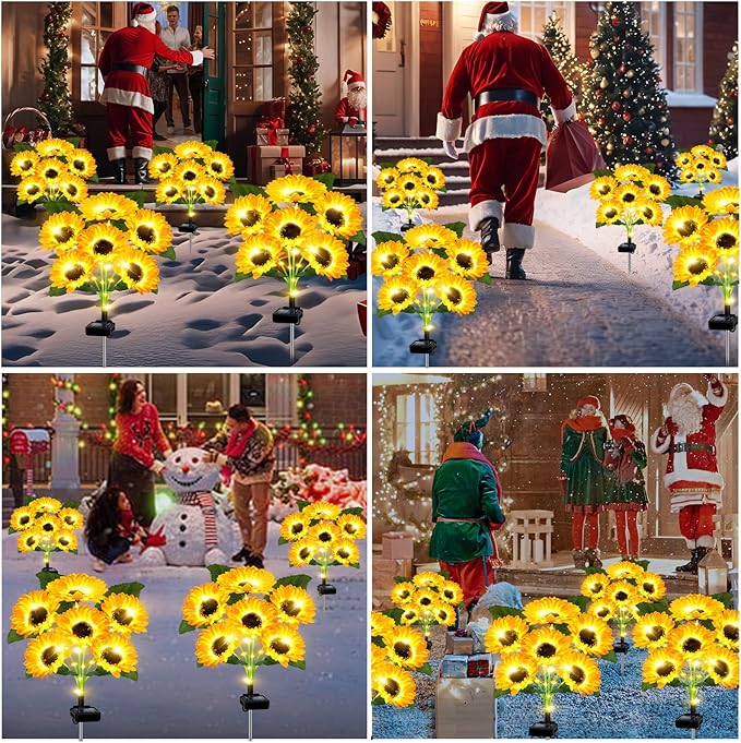 - 2025 Upgraded Sunflower Solar Lights:Compared with ordinary solar flower outdoor lights,each flower lights contains 6 sunflowers,a total of 24 sunflowers.delicate and realistic sunflower decorative lights make your garden more lively and pleasant.The petals,leaves and buds are designed to be more elaborate and realistic than other sunflower decorations.
