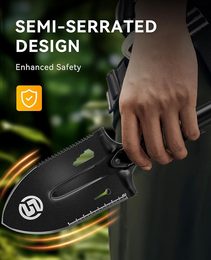 - Safe & Durable: The surface of metal shovel is made of manganese steel, with a half-serrated blade that ensures both safety and durability, handling tough jobs with ease.