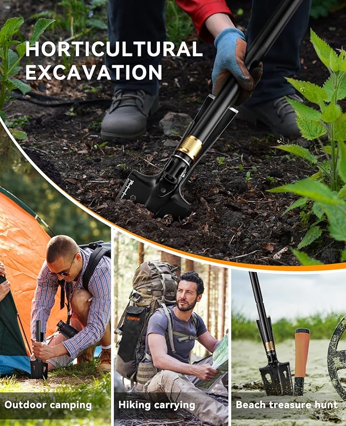 - Compact & Portable: This shovel for digging easily disassembles and packs into your bag, making it lightweight and perfect for gardening, camping, hiking, metal detecting, beach trips, and car emergencies. Take it anywhere without the bulk.