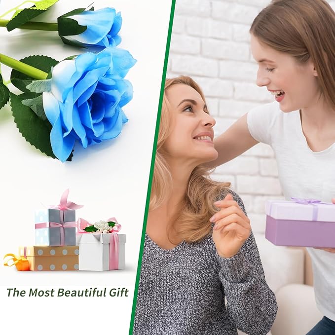 Solar Garden Lights, Solar Outdoor Lights with More Realistic 10 Rose Waterproof Solar Powered Flowers Lights for Outside Patio Yard Pathway Decorations, 2 Pack, Blue