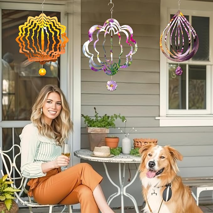 - WIDE APPLICATION — The spiral wind spinners for outside is suitable for gardens, windows, porches, front doors, backyard, trees, walls, patios, lawn and other indoor or outdoor spaces you prefer. It rotates in the wind, creating a magical 3D visual effect. This versatility makes it an ideal gift choice for weddings, Father's Day, Mother's Day, Valentine's Day, Christmas,Holiday, Halloween, Thanksgiving, anniversaries, and housewarming. A ncie DIY gift for our family, friend, mother, father.