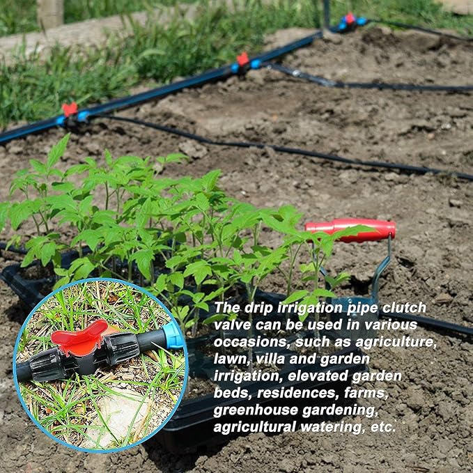 - Wide Application: These 1/2" plastic barb shut-off valves are versatile and can be used in a variety of settings such as raised garden beds, landscaping projects, greenhouses, farms, lawns, patios, and other agricultural watering systems. They are essential components for watering systems, drip systems, and sprinkler systems in vegetable gardens, flower beds, shrub areas, and more. Ideal for creating low-maintenance irrigation systems.