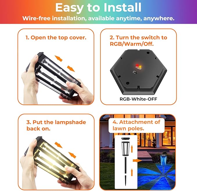 - 【Auto On/Off, Save Money】100% solar energy, outdoor solar lights will auto absorbs sunlight during the day and auto light up at night. Simply turn on the switch before the first use. The solar lawn lights is specially designed for you and fully practical which saving the workforce and expensive electricity bill, perfect for landscape lighting decor.