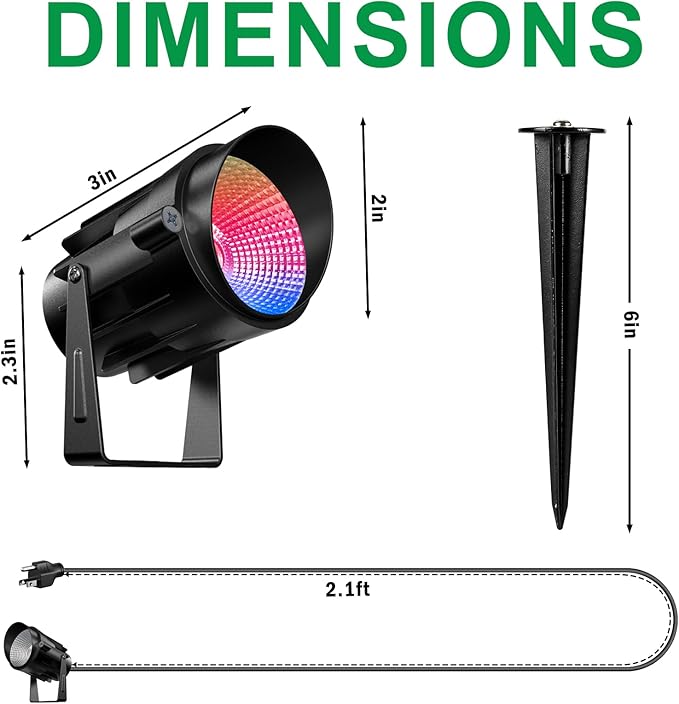 - The RGBW decorative lighting are crafted from high-quality heat-dissipating aluminum profile and tempered glass ensure the spotlight's durability in various outdoor scenarios, including rain and snow. The IP65 waterproof structure significantly enhances the longevity of the light fixtures, extending their service life to 50,000+ hours.