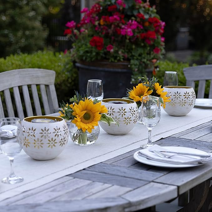 - 5.4” Metal Decorative Bowl - The Solar Fire Bowl features a stylish metal design, adding a touch of sophistication to your outdoor garden decor while serving as a functional solar table lamp, lantern and garden decor.