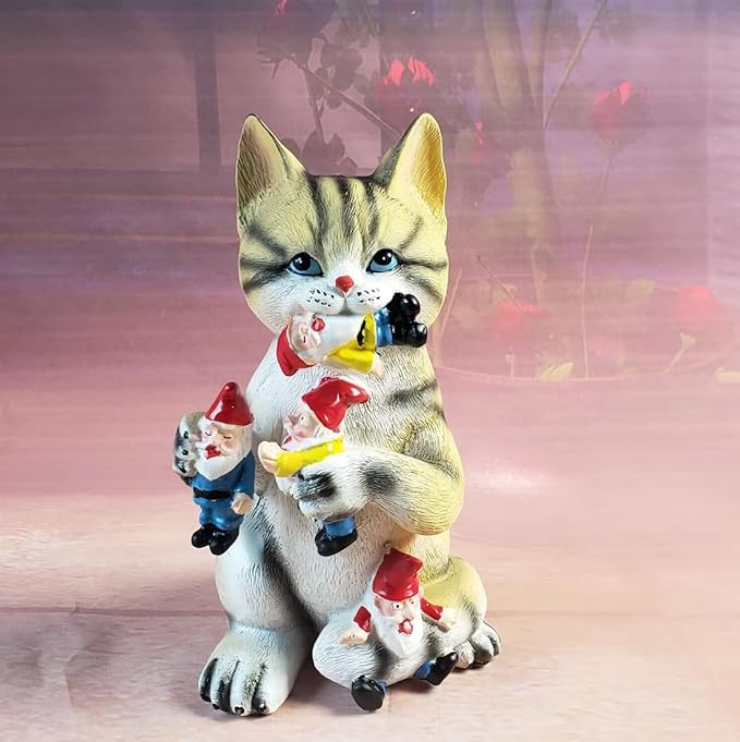 - Perfect Size: - This backyard cat gnome statue for gardens at 9*5 inch makes an impression wherever you put him - Perfect as garden decor, suitable for the garden, trees, flowers, flowerbed, fence, walkway. Add fun to your patio, garden, or backyard.