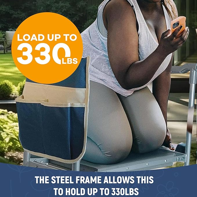 - 【Excellent Weight Capacity】Garden Kneeling Seat is made of steel, The reinforced design with four additional protective corners is more ergonomic and suitable for long-term gardening work. The steel frame allows this to hold up to 330lbs, yet it is light enough to fold and carry for easy portability.