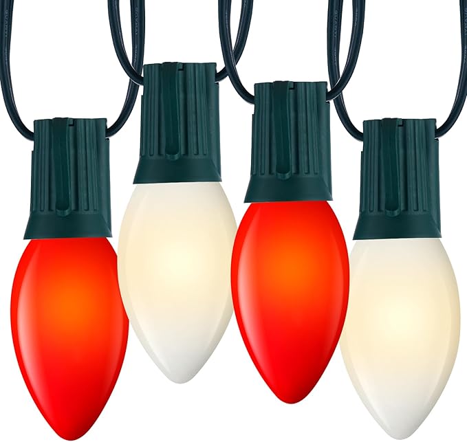 Minetom Outdoor Christmas Lights, 50 FT Vintage Red and White C9 Christmas String Lights for Christmas Holiday Indoor Room Roofline Backyard Garden Patio Home Decor, E17 Base, Green Wire