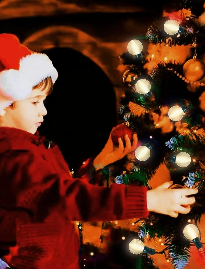 - 🎄Christmas vintage decor string lights: Christmas decoration lights glow a 2200K warm white, combined with special design frosted housing, plug in christmas lights and enjoy the bright and romantic holiday atmosphere, hanging Christmas roofline string lights for Chritsmas theme party, indoor home, store, backyard, garden, outdoor patio, wall gate, yard, wedding birthday party and winter decor. Holiday decorating is easy with the G40 Christmas globe bulb string lights, these green wire decorative lights sure to bring warm to your home