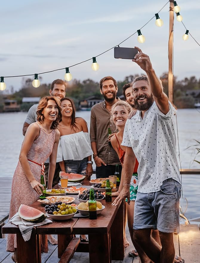 - 🎄Widely used: Patio lights outdoor waterproof 25 feet string lights perfect for patios, decks, weddings, tents, pergola, bistro, backyards, pool umbrella, parties, Christmas string light and tree decor, celebration, camping and many other occasions, an elegant appearance and soft lighting can help to enhance the ambiance
