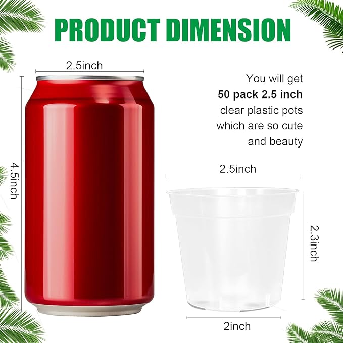 - New PP Plastic: Our clear pots for plants are make of new PP plastic, which are more durable and sturdy. And you can get 50 pack 2.5 inches clear nursery pots. Height is 2.3 inch, bottom diameter is 2 inch. These seed starter pots provide the good environment to promote the healthy growth of seedlings.