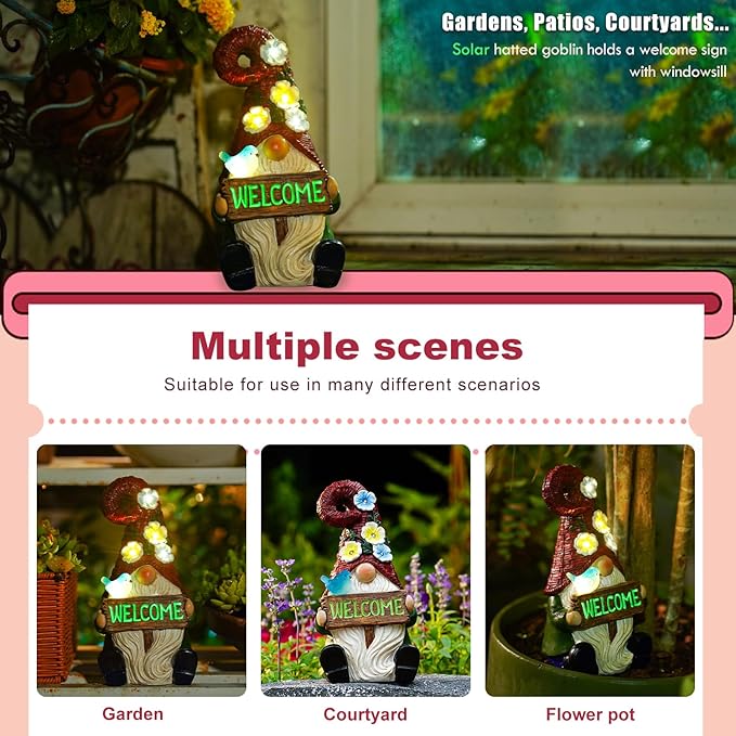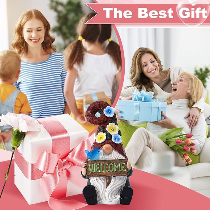 Welcome Gnome Solar Statue Decor for Yard Decorations - 10 Inch Gnome Statue Decor for Outdoor,Perfect Garden Gifts for Women,Mom