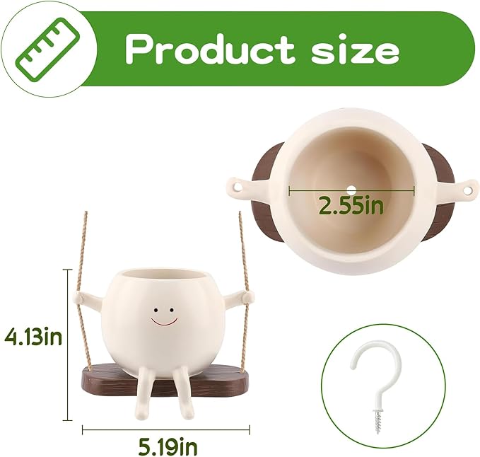 - Unique Hanging Planter: This swing face planter pot features a distinctive face-shaped design, when placed in front of you, will bring spontaneous joy with its cheerful expression. Adding fun and playful colors to our rooms and gardens.