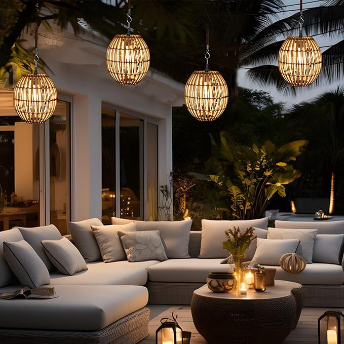 - 【Decorative Rattan Lantern】:The solar lantern is made of natural bamboo and plastic rattan, equipped with a hemp rope hook and a retro Edison bulb. The light is warm light color, creating a retro Bohemian style at night, which is very suitable for decorating gardens and terraces.