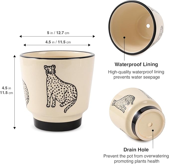 - Modern Small Plant Pots: Ceramic Pots for Plants is designed with cute panther and special flowers pattern that adds a lively and modern feel, the Small Pots for Plants can bringing a stylish visual presentation to your home/office decor.