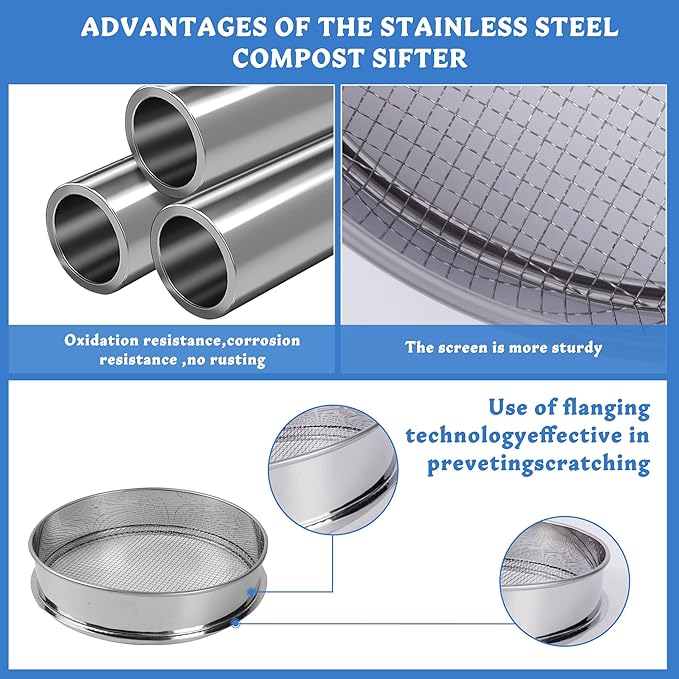 - (Product Features): We understand the importance of comfort and ease of use. That's why our sieve features a lightweight design to save your arm strength when used for long periods of time. The carefully optimized design ensures a comfortable grip and reduces pressure on your hands and wrists. You can sift easily and efficiently, making your gardening work more enjoyable.