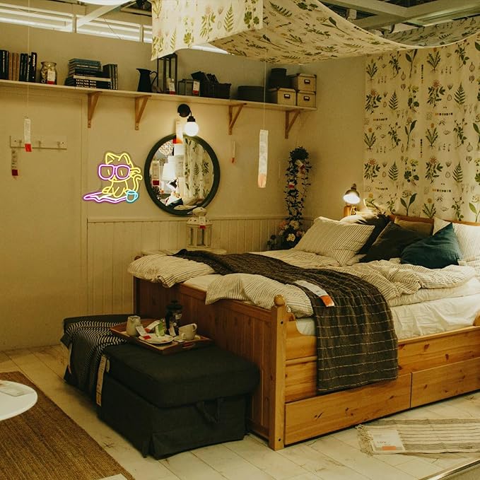 - Ignite the joy in your life: Illuminate your life with this Reading Cat neon light, showcasing your passion for life and creating a unique atmosphere! Perfect for decorating man caves, bars, or bedrooms.
