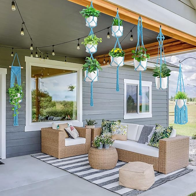 - VALUE PRESENT PACKAGE: Macrame plant hanger included six Different Sizes Crochet Plant Hangers, six“S” Hook, six Ceiling Hook, six Expansion Tube. Unique creative design, modern, retro style hanging plant add the perfect touch to your room and living room, you can hang indoor plant hangers on the ceiling in the living room, bathroom, bedroom and office. Great for indoor and outdoor décor