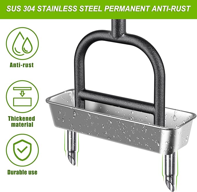 - Stainless Steel Coring Plugs: Our 2 core aerator plugs uses sus 304 stainless steel material that will not rust or bend out of shape. Additionally, our rod is made from high-quality solid steel with a black powder coating on the surface to ensure long-term use of the tool.