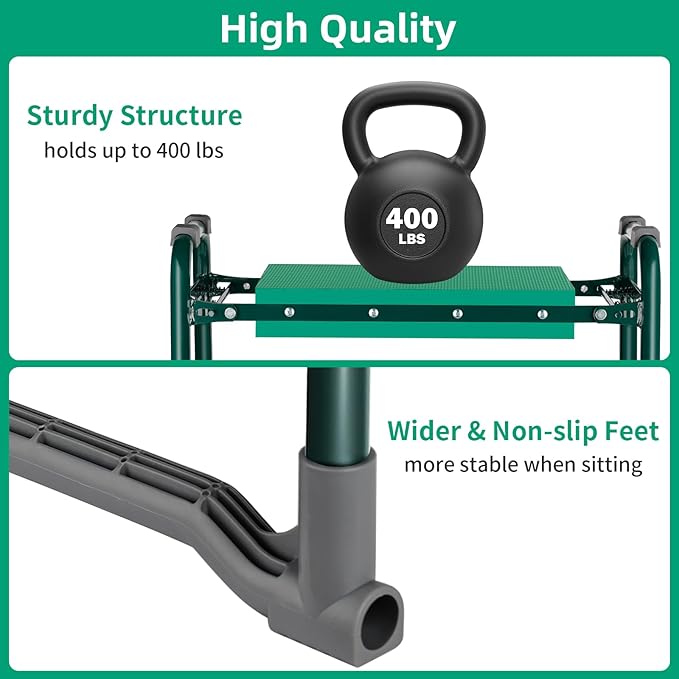 - 【2-IN-1 GARDEN TOOLS】This is a multifunctional gardening supplies: you can use it as garden kneeler, knee the soft kneeling pad which can save your knee when weeding, and it have raised handles to help get up and get down. Or, flip it over, sit on it as a garden seat. The wider and non-slip designed feet makes it more steady while sitting.