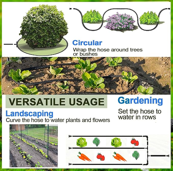 - Versatile Usage: The black soaker hose can be used anywhere, the garden, greenhouse, allotment, flower beds, planter boxes, closely planted or narrow areas, vegetable gardens or loops around trees. These fantastic garden hose and accessories are ideal for a multitude of jobs outside the home such as plant watering, patio cleaning!