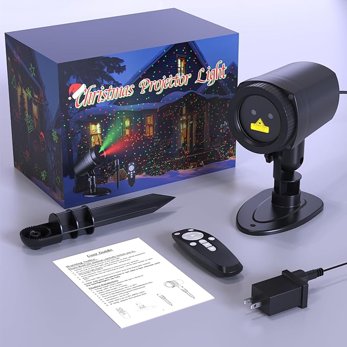 - Hassle-Free Setup and Wall-Penetrating Remote Control: The Christmas light projector outdoor automatically turns on when plugged in, and the remote control features wall-penetrating capabilities, allowing easy control of the Christmas projection light from indoors. This light offers Auto mode, Flash mode, Freeze frame mode, and the ability to control pattern speed with the + and - buttons on the remote. It also includes a unique countdown timer and automatic on/off feature (24-hour cycle).NOTE: Batteries not included in remote control.