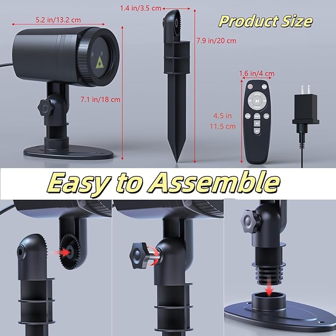 - Weatherproof & IP65 Waterproof: The Christmas projection light you receive can be used in rainy or snowy outdoor conditions and operates normally in temperatures ranging from -22°F to 86°F. The product includes one base and one ground plug, Power cord with a length of 9.8ft, offering two simple and convenient installation options suitable for gardens, lawns, patios, walls, ceilings, and floors.