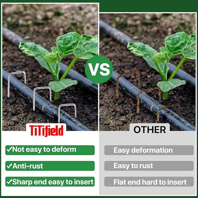 - Rust-Resistant Galvanized : These landscape staples are galvanized to resist rust and corrosion, offering long-lasting performance in all weather conditions. Trust these landscaping stakes to stay strong and reliable season after season.