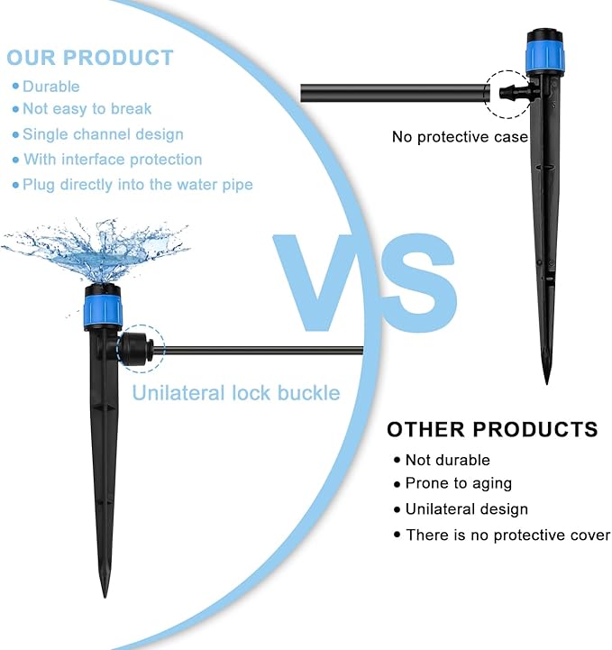- Easy Connect Design:Our drip irrigation emitter can be connected directly to 1/4" irrigation tubing, no more heating to soften the tubing. Just 1 step, plug and play( Installation in Seconds)