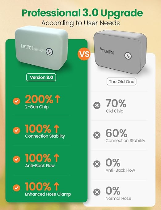 - 🥇 [New Upgrades for Superior Performance]: The LetPot automatic watering system now includes an anti-backflow valve to prevent the siphon effect, enhancing watering efficiency. Its upgraded 2.0 chip ensures faster and more stable connectivity, while the LetPot app supports up to 5 simultaneous watering tasks for maximum flexibility. Combined with an advanced spiral lock, it maintains better water pressure retention, ensuring consistent and reliable irrigation every time.